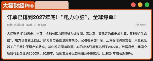 现在的情况是,海外订单非常大,像储能设备,今年一开年出口直接爆单,一些厂商订单已排到2027年。