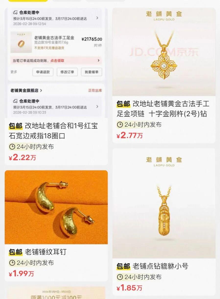 “老铺黄金只剩下铺和柜姐了,空空如也,不仅素金没了,划算的点钻也没了。”老铺黄金开年调价前夕,社交媒体上流传这样的说法。