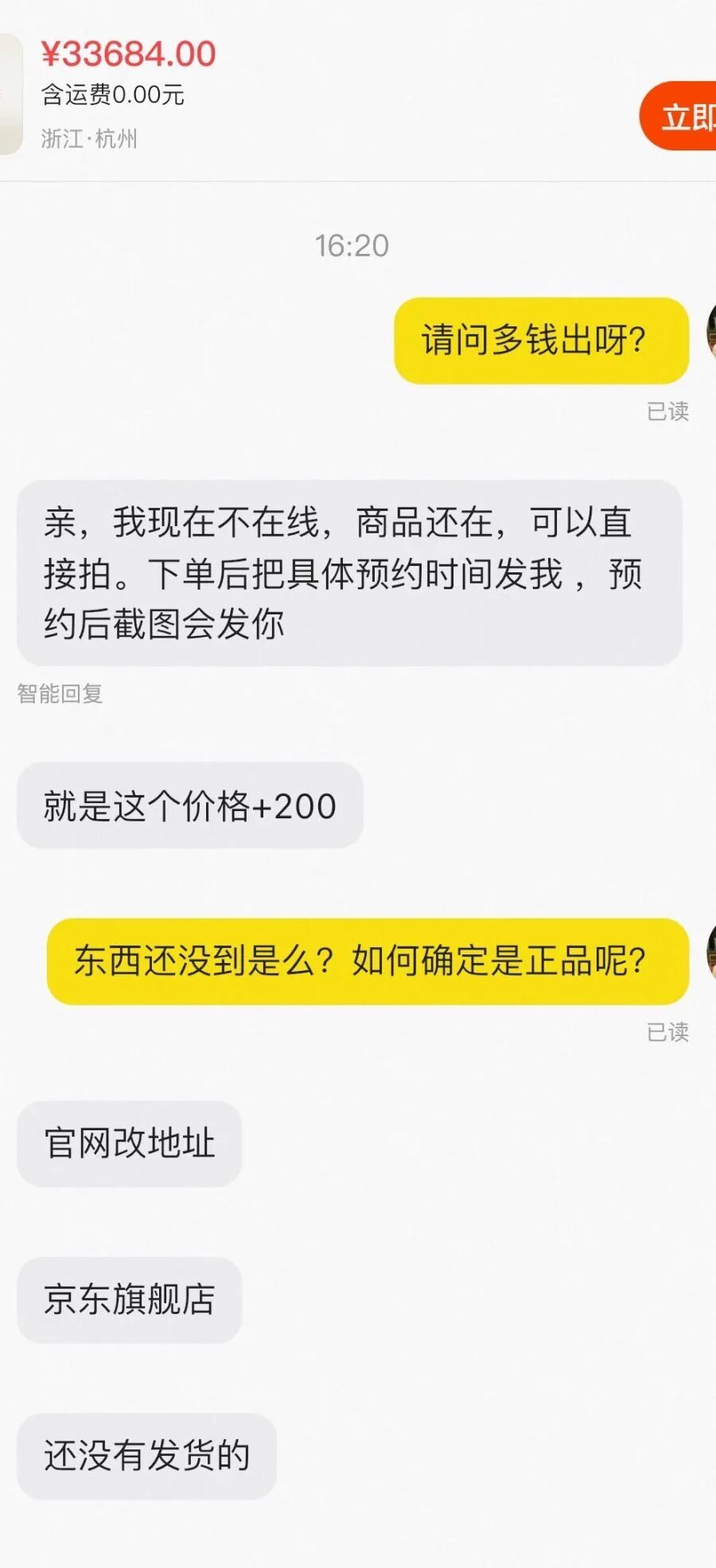 21世纪经济报道记者在某二手平台发现,已有“黄牛”抓住了供货不足的漏洞,在本次涨价之前在网上下单,锁定涨价前的价格,在每单加价数百元后,直接通过修改收货地址的方式转卖牟利。