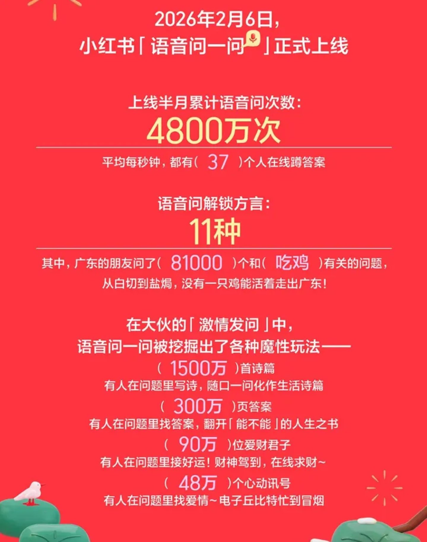 从数据反馈看,上线半月累计4800万次语音提问、除夕当日“拜年祝福怎么发更特别”被提问570万次,说明功能在特定场景下确实形成了使用惯性。但这些数据是否意味着用户心智的真正迁移,仍有待观察——春节期间的高频使用与节后的留存率之间,往往存在显著落差。