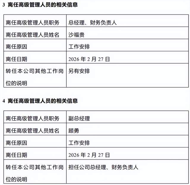 2025年9月5日,原督察长郜杰因个人原因离任,沙福贵开始代履督察长职责。此后的五个月里,他身兼总经理、财务负责人、督察长三职,同时还是公司董事。