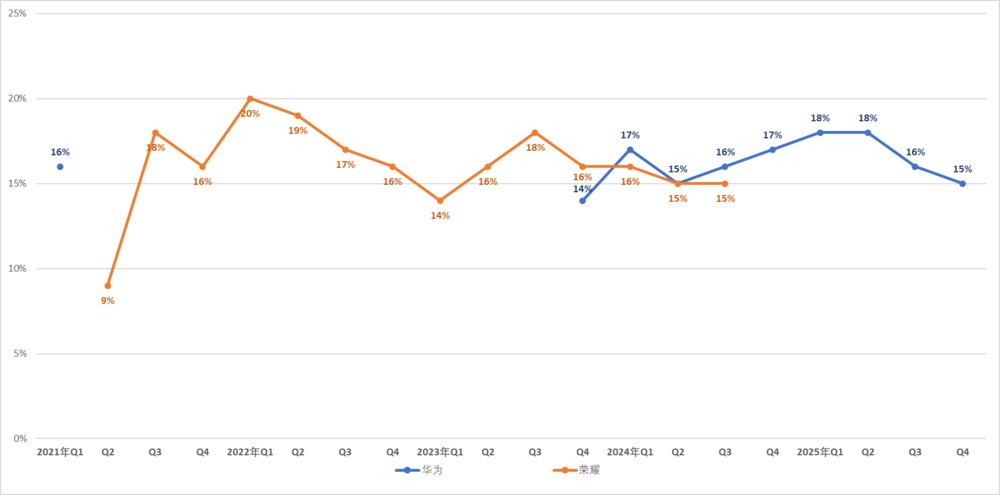 在投资者的估值逻辑中,传统手机硬件厂商和AI终端生态公司有着完全两种不同的市盈率故事。如果荣耀继续仅被定义在存量市场肉搏的硬件卖场,其估值空间将极度受限,尤其是在华为强势归来导致其市场份额下滑的背景下,即便Robot Phone面临种种考验,荣耀仍坚持将其推向台前的战略核心在于:高溢价的“具身智能”叙事。