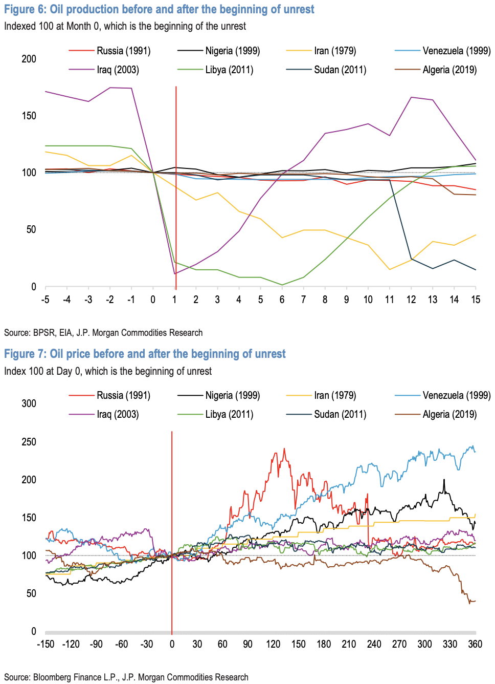 摩根大通援引自1979年以来八次中大型产油国政权更迭的历史数据,给出了极具参考价值的量化规律:从冲突爆发到价格峰值,油价平均涨幅达76%;冲突爆发后第一个月油价平均上涨约5%,三个月内平均涨幅扩大至30%,且最终往往稳定在高于冲突前约30%的水平。