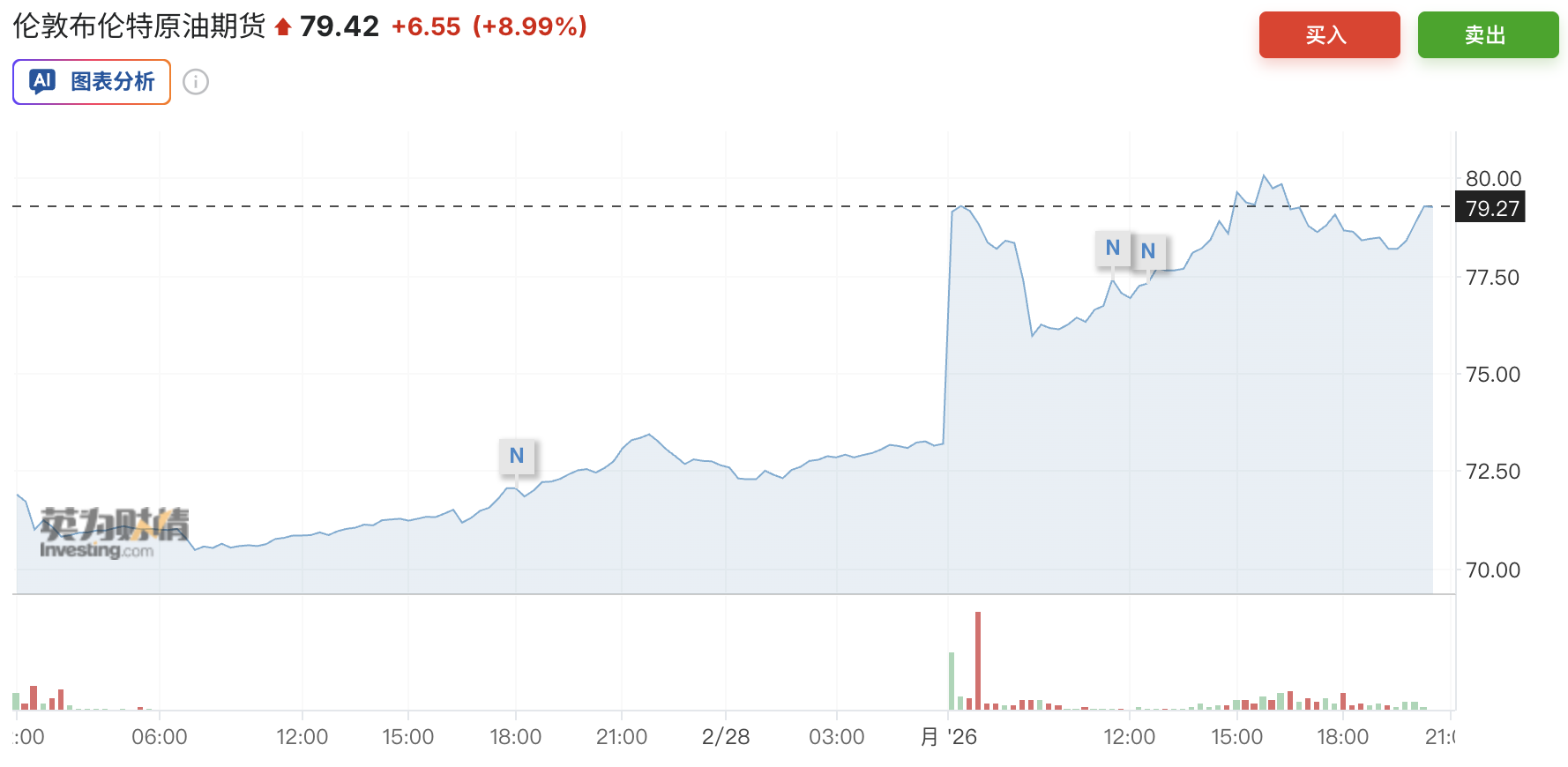 截至发稿,布伦特原油报价79.4美元。