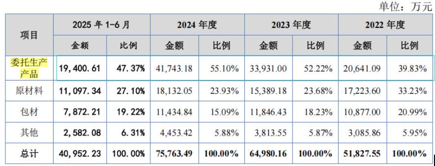 英氏控股主要品牌“英氏”“舒比奇”“忆小口”等在婴童食品与卫生用品行业的市场地位高度依赖于消费者对品牌的信任,因此若出现针对公司品牌的重大不利报道,或公司在品牌形象维护中存在疏漏,将可能导致消费者信任度下降,进而影响公司的经营业绩。值得注意的是,2022年-2025年1-6月,公司委托生产产品占比分别为39.83%、52.22%、55.10%和47.37%。