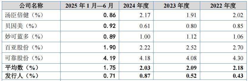 报告期各期,英氏控股销售费用分别为4.541亿元、6.025亿元和7.211亿元和3.969亿元,销售费用率分别为35.04%、34.26%、36.53%和35.07%,高于可比同行均值26.16%、27.19%、27.75%和25.87%。