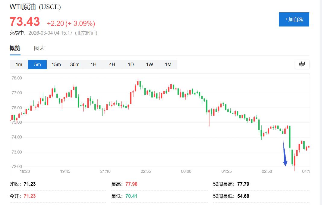 欧股盘中刷新日高时逼近78美元/桶、日内涨近9.5%的WTI原油期货一度接近71.70美元,日内涨幅不足0.7%。周二欧股盘中也曾涨近9.5%的全球基准布伦特原油曾回落到78.54美元,较周一收盘涨1%。