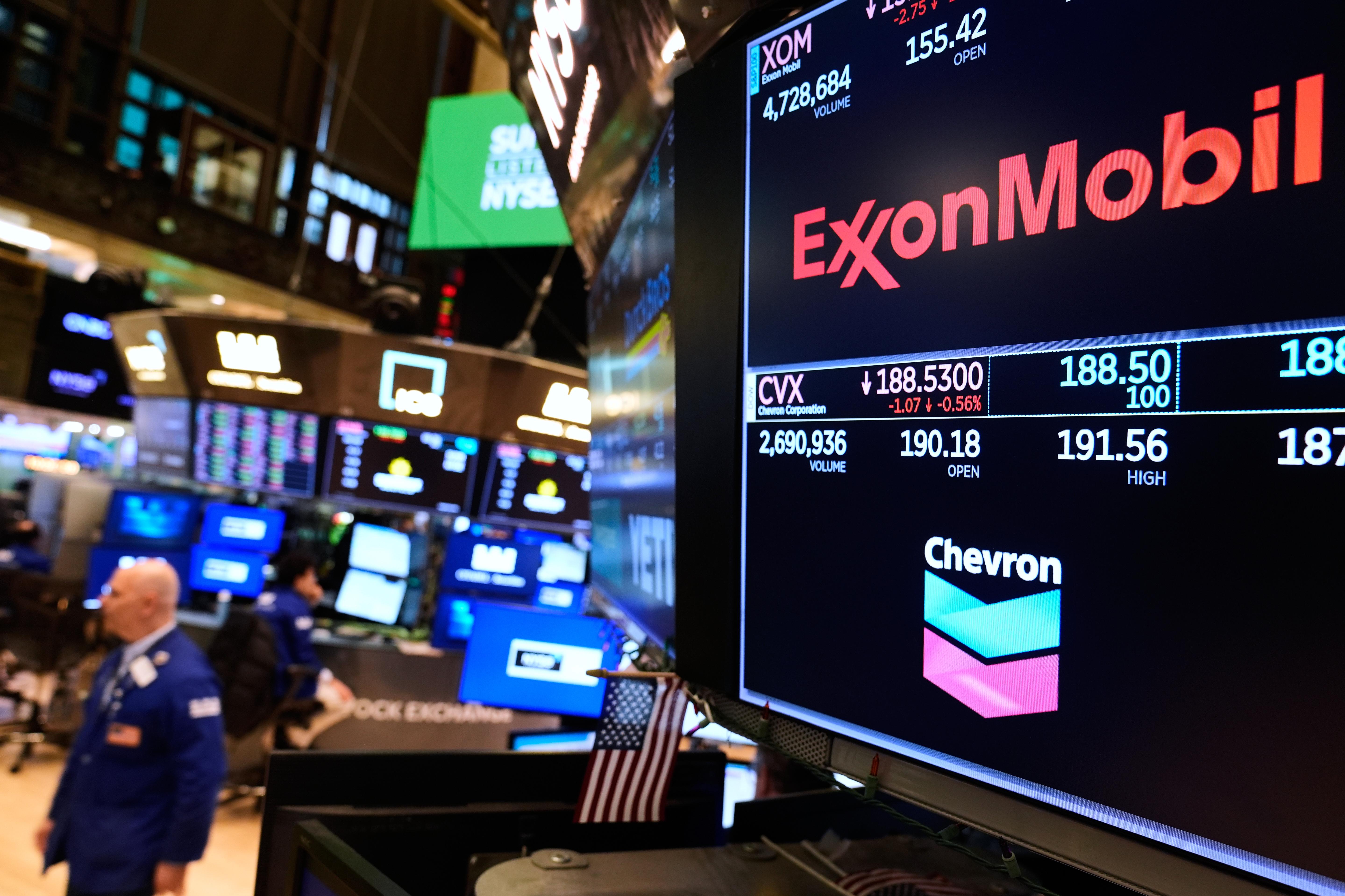 3月3日,纽约证券交易所大厅的屏幕上显示能源公司的标志。(美联社)