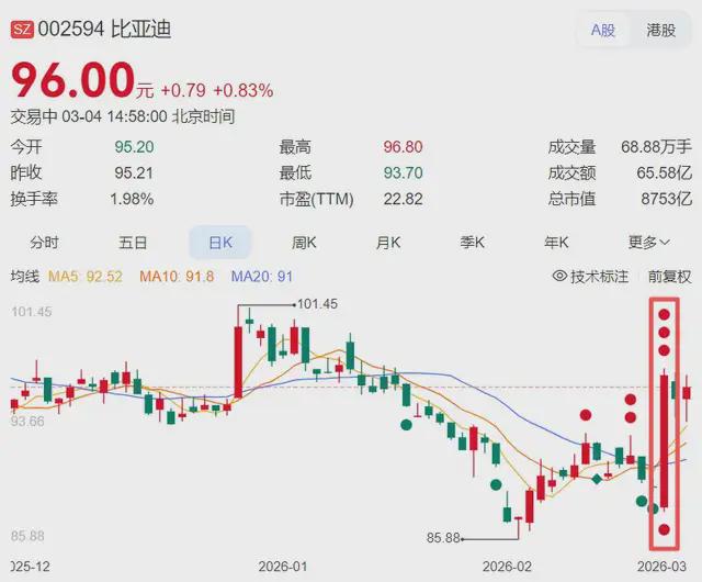 就在大家还在惊叹这车有多安全时,比亚迪直接扔出更大的消息,今晚19点要开一场“只讲黑科技、不发新车”的颠覆性技术发布会。消息一出,资本市场直接沸腾,比亚迪股价3月2日大涨近8%。成交额超百亿,港股也同步走高。足以看出,不管是投资者还是市场,都对其即将亮相的新技术充满期待。