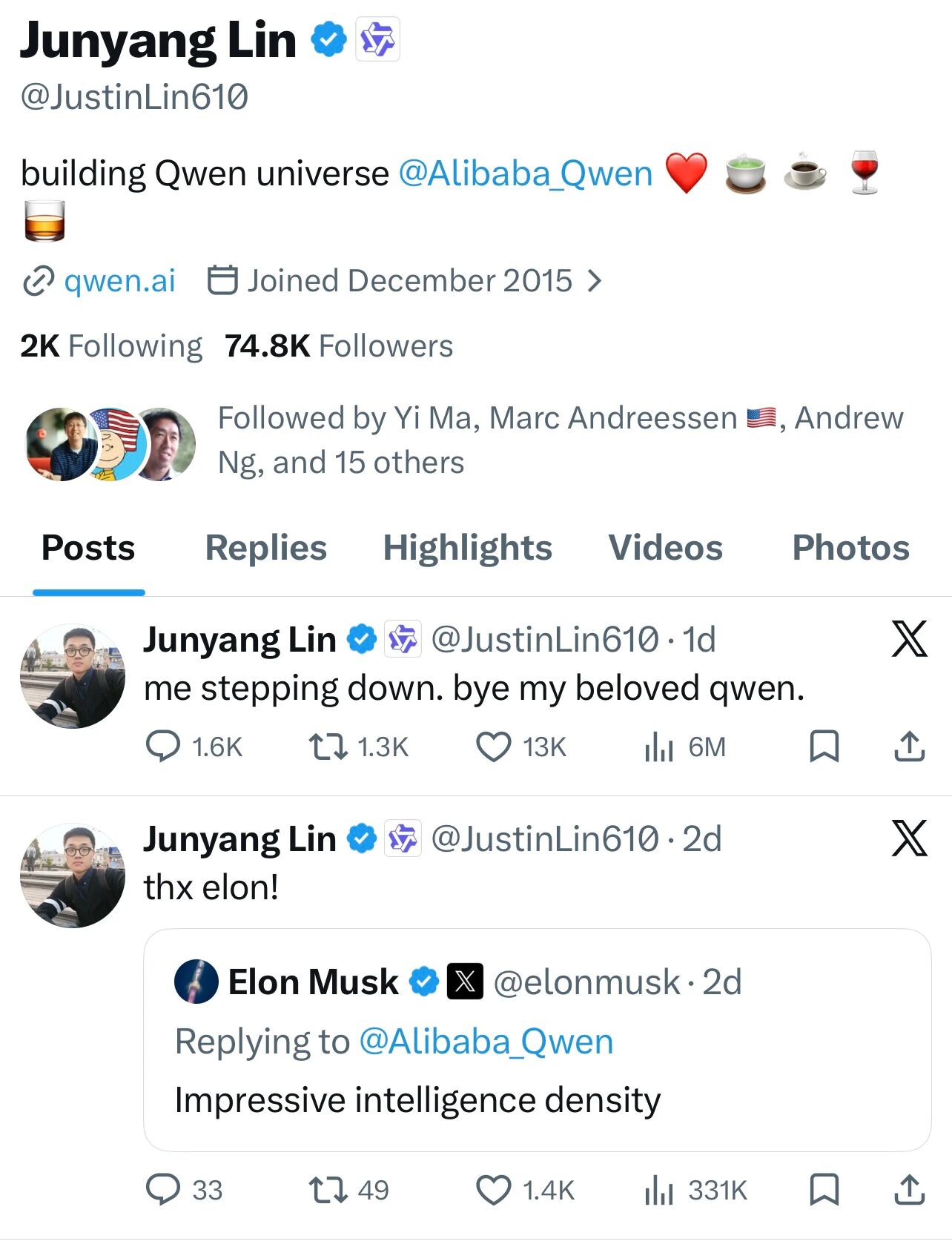 就在前一日(3月4日)凌晨,林俊旸在社交平台发文“me stepping down. bye my beloved qwen.”(我卸任了,再见了,我亲爱的千问),突然宣布离职。此时距离其团队刚刚发布Qwen3.5系列小模型、并获得特斯拉CEO埃隆·马斯克公开点赞仅隔不到24小时。