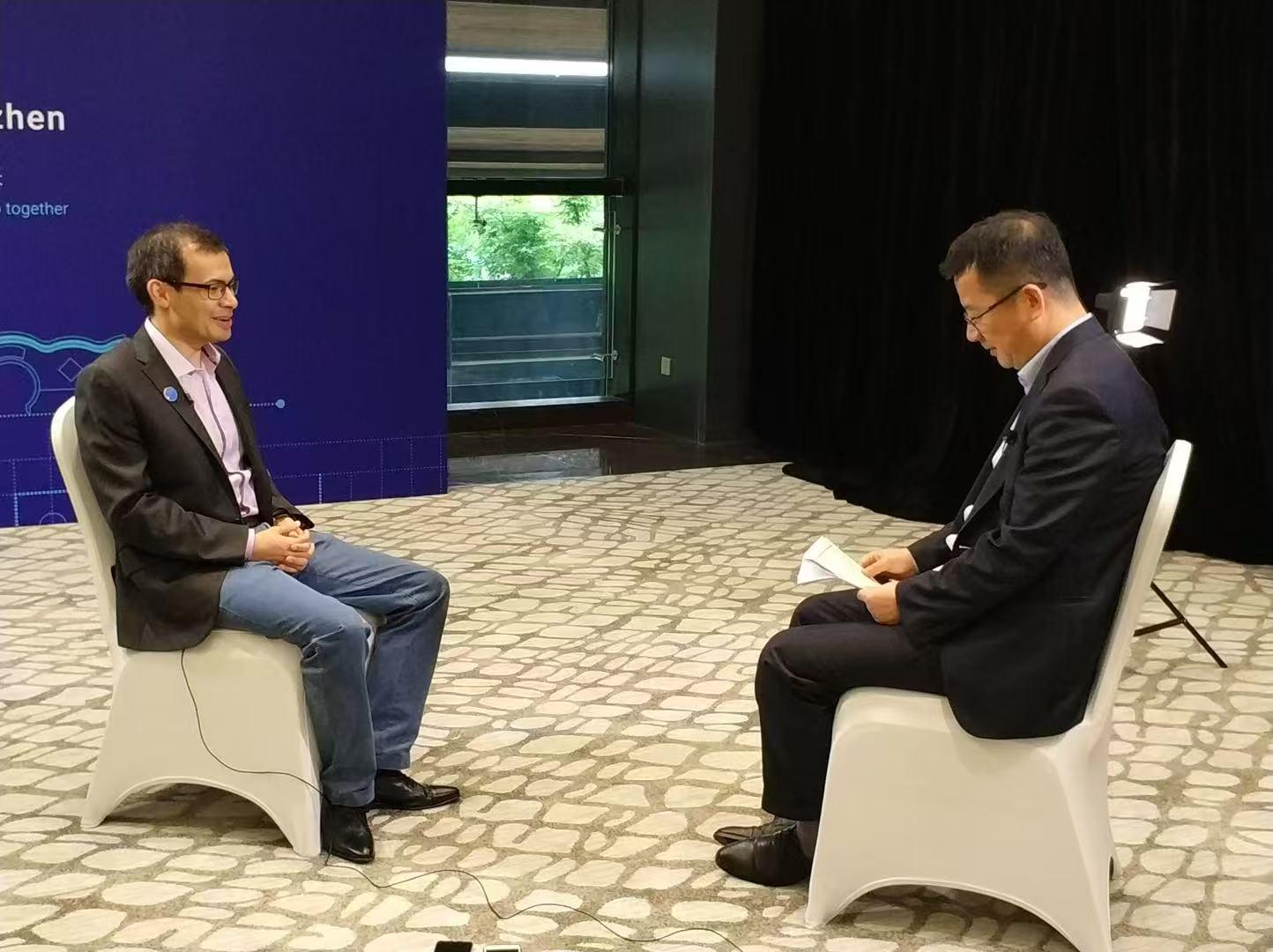 2017年,哈萨比斯在乌镇接受周健工采访。图片来源:周健工提供