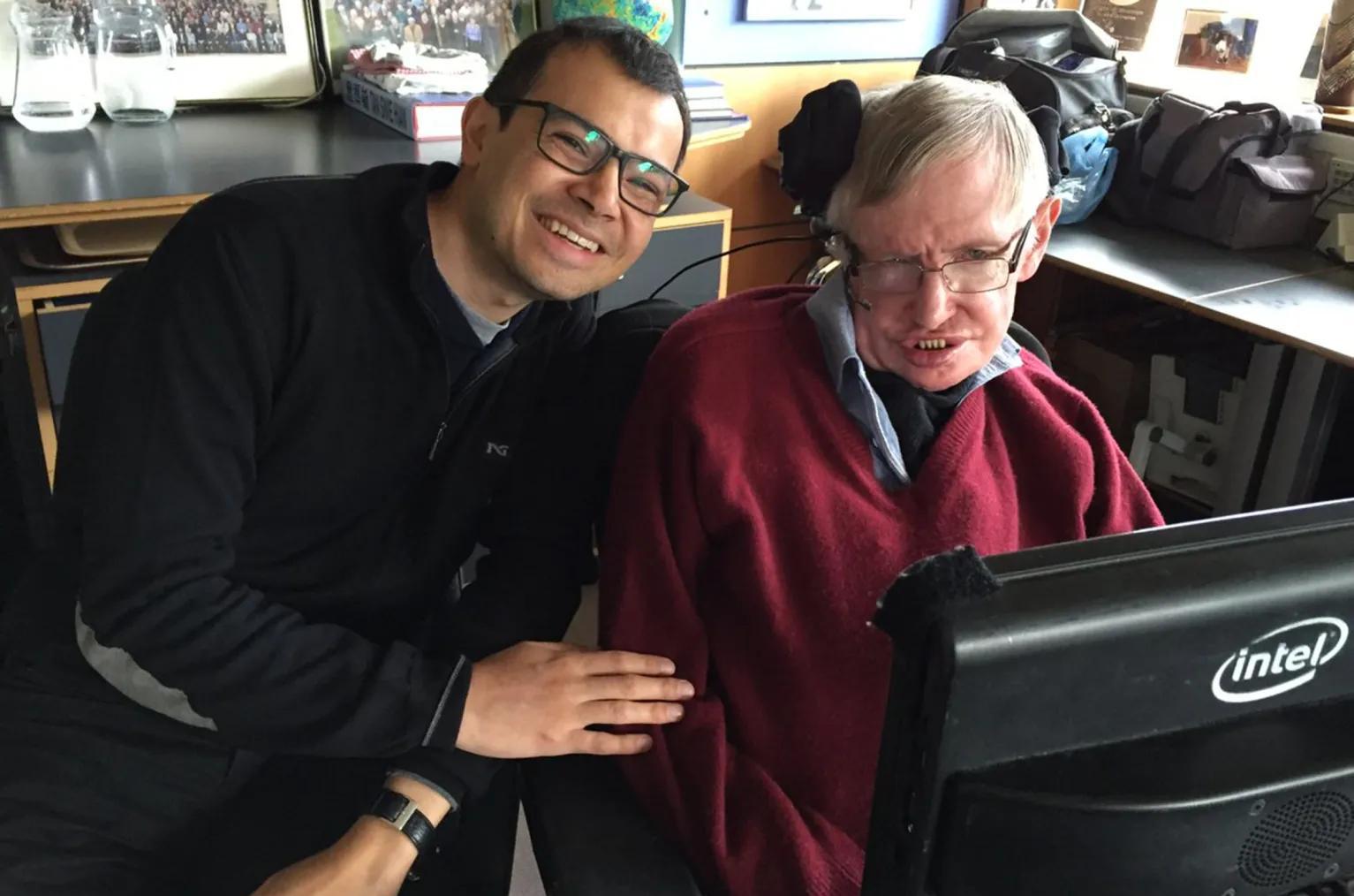 2017年,哈萨比斯与霍金合影。图片来源:©Demis Hassabis 提供