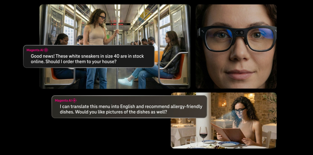 雷鸟创新与欧洲电信巨头德国电信联合展示了一款AR眼镜,其搭载的“Magenta AI”能理解环境并自主完成复杂任务,号称实现“感知即服务”。