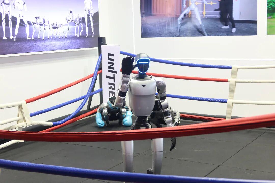 宇树机器人站在擂台上,向全世界媒体挥手致意