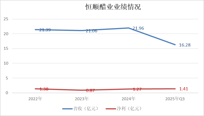 但现实执行却面临多重挑战。首先,产品结构严重失衡,截至2025年前三季度,食醋仍为恒顺醋业贡献了10.53亿元营收,占比超过60%;酒系列和酱系列合计占比不足25%,且酒系列去年前三季度营收同比下滑9.71%,“第二曲线”尚未成形。