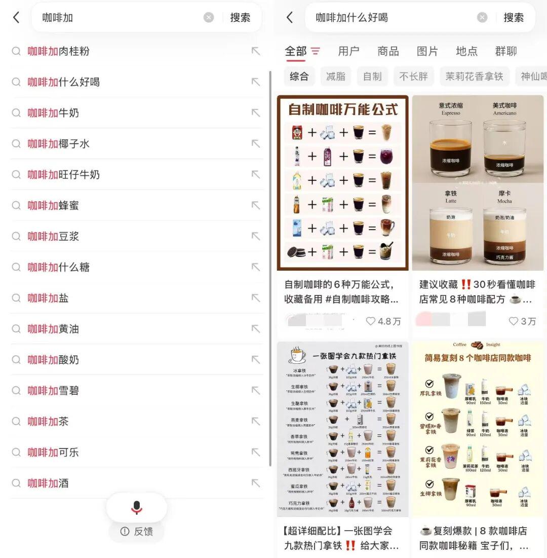 其中,一部分消费者沿着奶咖的舒适区横向拓展。在小红书等社交平台中,用户通过添加椰奶、柠檬、冰块甚至甜品原料创造个性化风味,形成了“咖啡+”的开放式消费模式,从而进一步丰富了奶咖品类的想象空间。