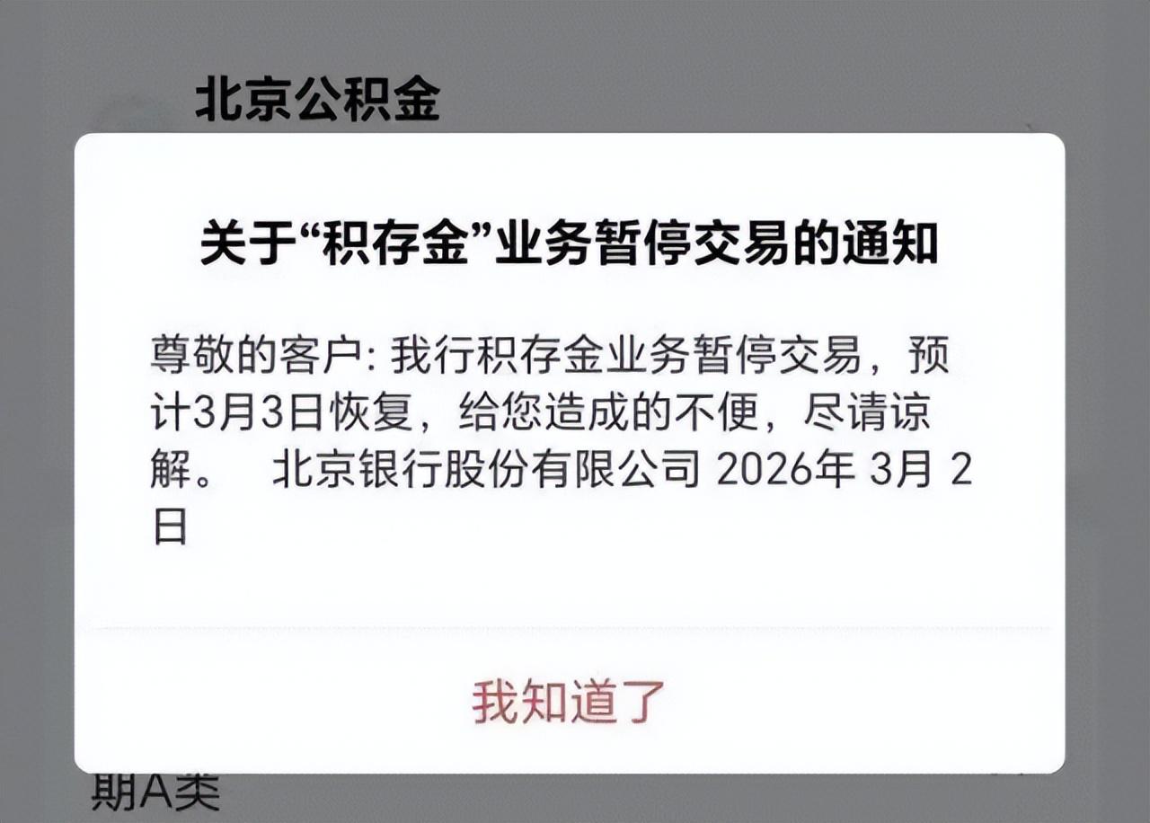 面对突发的系统BUG,北京银行采取了紧急关停措施,直接将手机银行APP贵金属业务板块中的积存金模块入口隐藏,该板块从页面中“消失”。这一操作直接导致所有积存金相关业务停摆,投资者无法办理买入、卖出、兑换实物等新操作,原有积存金账户内的资产也暂时无法查看。用户打开相关页面后,系统弹窗显示了一份《关于“积存金”业务暂停交易的通知》,称积存金业务暂停交易,预计于3月3日恢复。
