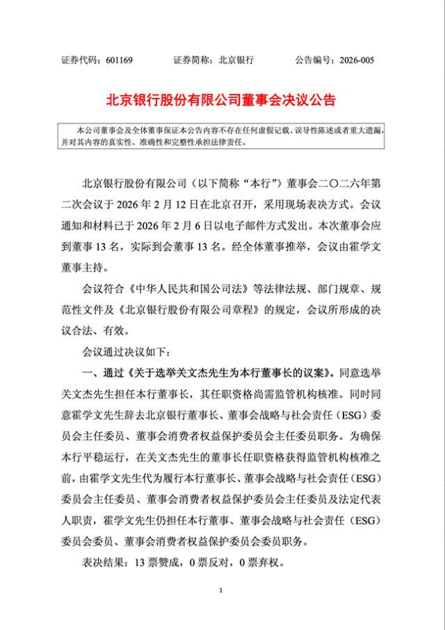 2026年2月12日,北京银行迎来重要时刻——关文杰任北京银行董事长。