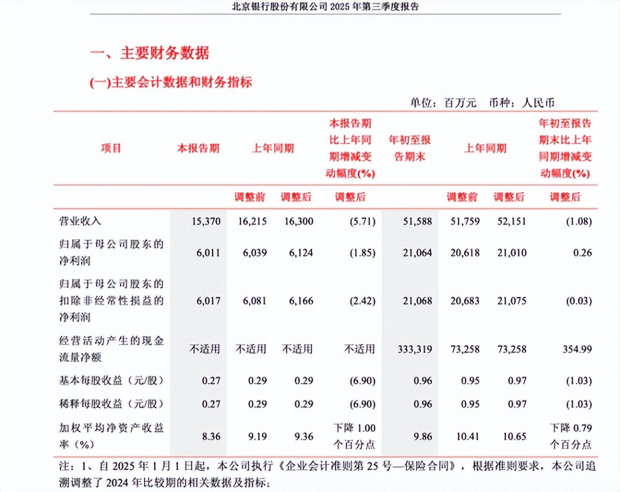 2025年第一季度,北京银行营收和归母净利润同比增速首次双双转负,第二季度出现反弹,但终究未能持续,第三季度再次双双转负。