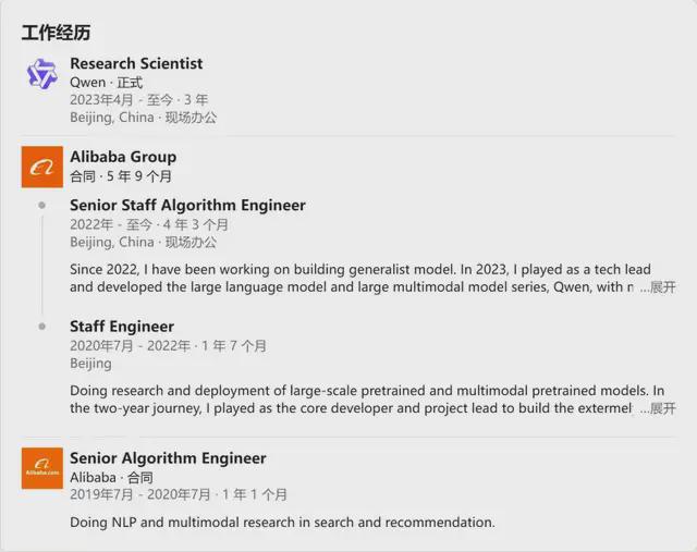 2019年硕士毕业,他以应届生的身份进了阿里达摩院,从一个高级算法工程师做起。在大厂论资排辈的环境里,他用6年时间完成了四级跳,一路干到P10,这速度跟坐火箭似的。而他手里的王牌,就是通义千问。