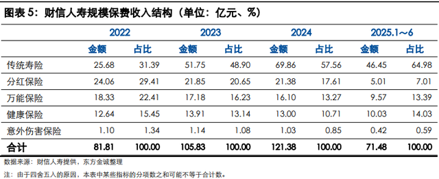 在保险业务上,财信人寿经营传统寿险、分红险、健康险、意外险和万能险等,近年来业务重心明显向传统寿险倾斜。根据东方金诚发布的评级报告,财信人寿传统寿险保费收入由2022年的25.68亿元增至2024年的69.86亿元,占比也由31.39%升至57.56%,2025年上半年传统寿险保费占比进一步升至64.98%。