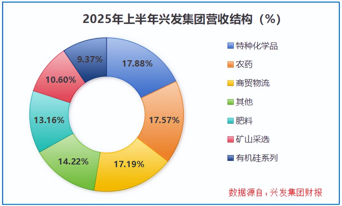 但相比于云天化,兴发集团的业务更加分散,2025年上半年其农药业务仅贡献25.68亿元营收,占总营收的17.57%,同期肥料业务占比也只有13.16%,都没超过20%。