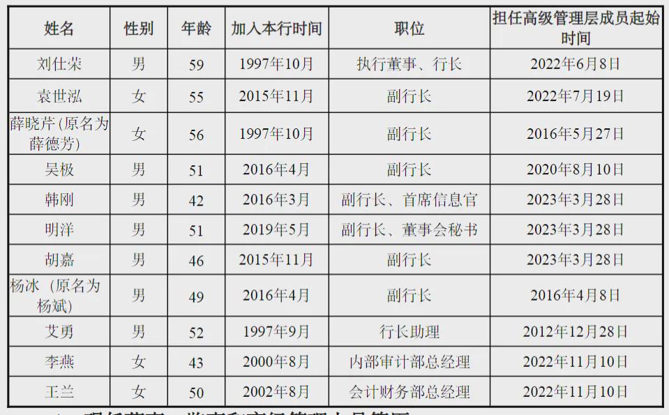 据2025年半年报披露的信息,泸州银行高管层为一正七副的架构,11名高级管理人员包括行长刘仕荣,副行长袁世泓、薛晓芹、吴极、韩刚(兼首席信息官)、明洋(兼董事会秘书、联席公司秘书)、胡嘉、杨冰,行长助理艾勇,内部审计部总经理李燕,会计财务部总经理王兰。