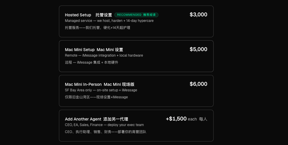 在遥远的大西洋彼岸,有人开起了代装公司,装一次 OpenClaw 收费上千刀,号称可以年入百万。
