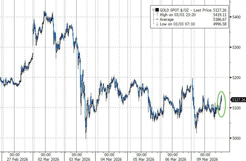 现货黄金价格同样在早盘的抛售潮中承压,但随着美元从高位回落,金价反弹、仍较上周五尾盘下跌0.7%。现货白银则扭转日内颓势、涨超3%。