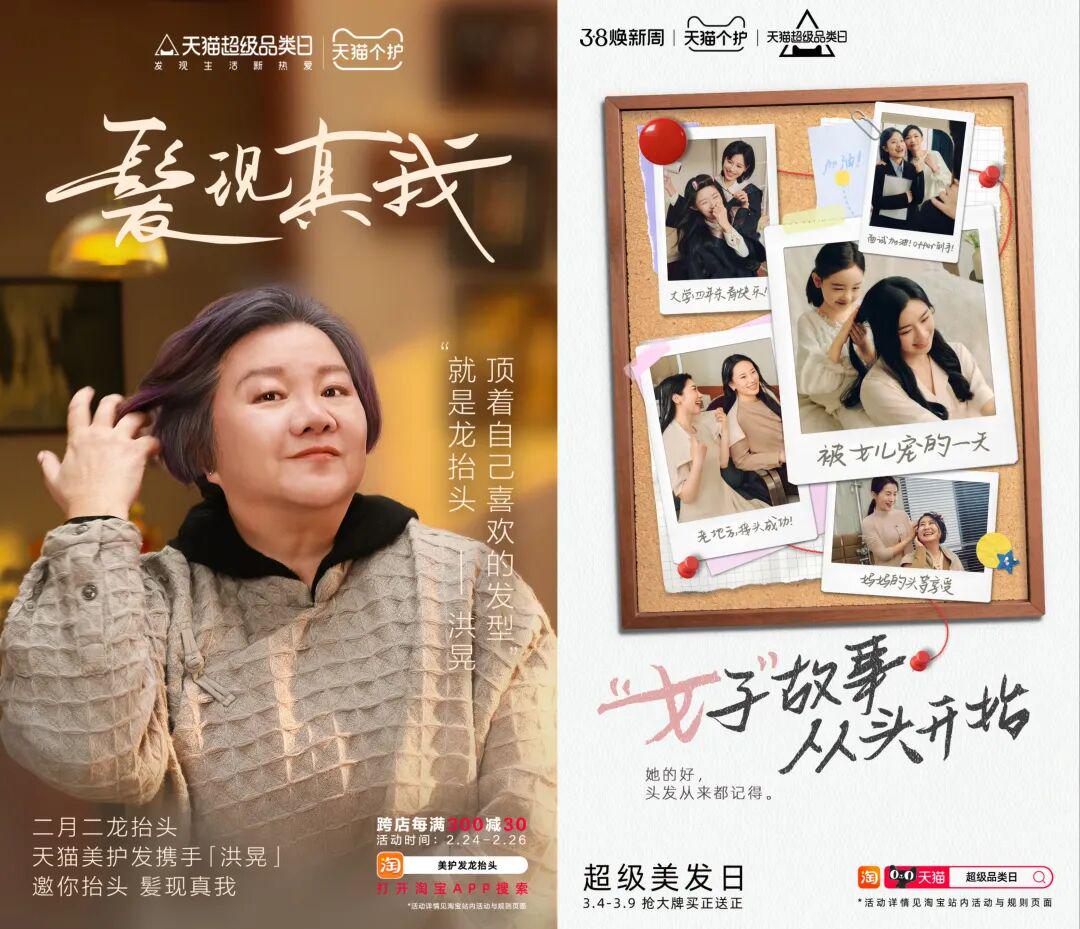 ▲ 图/左为2025年天猫美护发龙抬头主kv,右为2026年天猫美护发龙抬头主kv