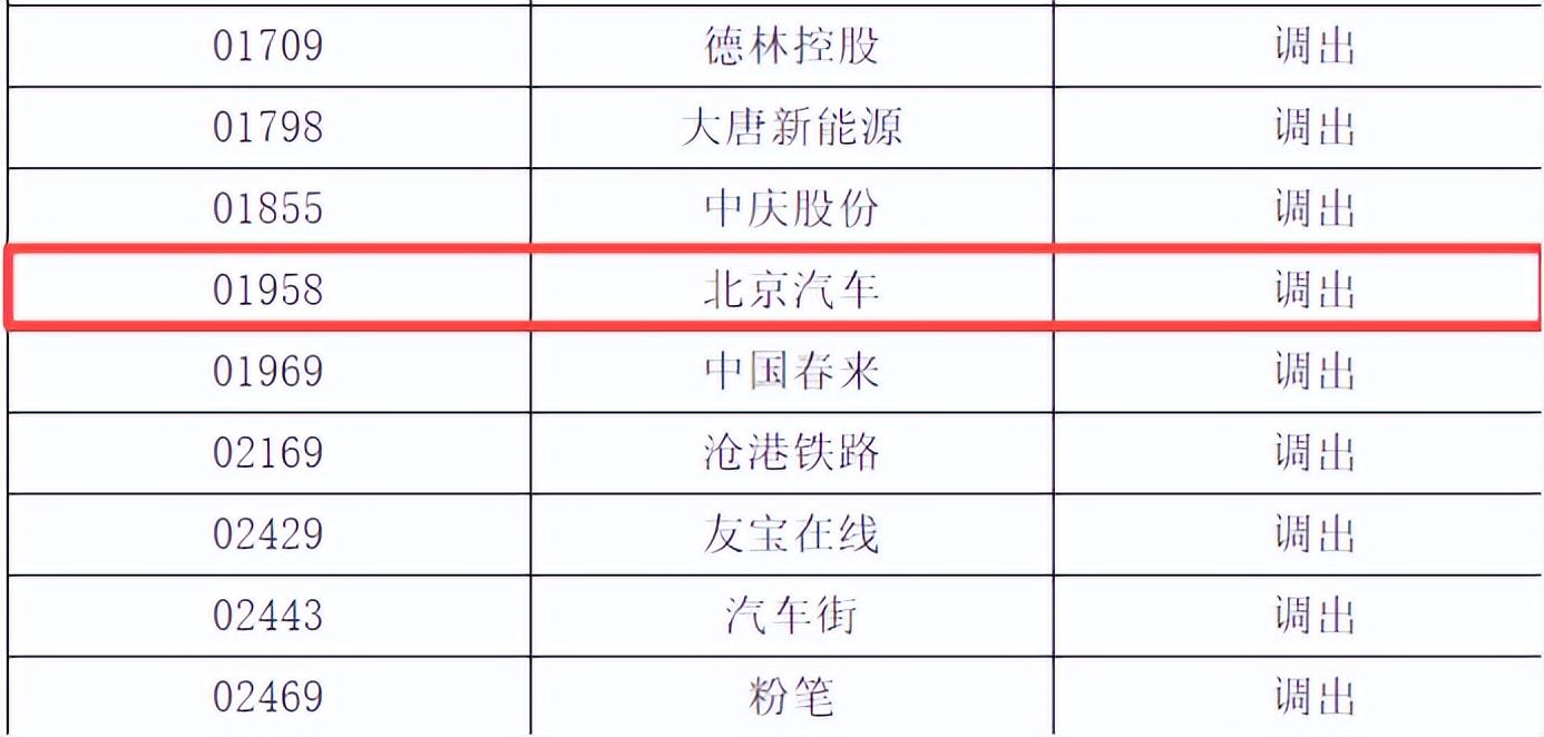 根据沪深交易所与香港联合交易所共同制定的港股通规则,市值不达标、流动性不足是标的被调出的核心条件,其中明确要求过去12个月日均市值需不低于40亿港元,换手率需维持合理水平,且港股通标的与恒生综合指数成分股高度绑定,一旦被剔除出恒生综合指数,便大概率会被调出港股通。2026年2月13日,恒生指数公司发布检讨结果,北京汽车因市值排名跌出港股主板96%覆盖率,被正式剔除出恒生综合指数,这一调整直接为其3月9日被调出港股通铺平了道路。