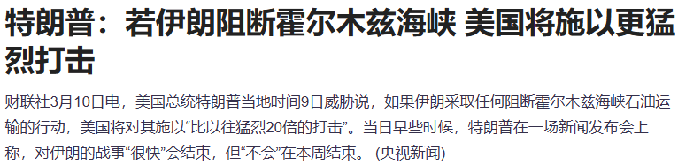 特朗普还表示,由于美国和以色列对伊朗的袭击造成市场动荡,他将取消一些与石油相关的制裁,以平抑油价。