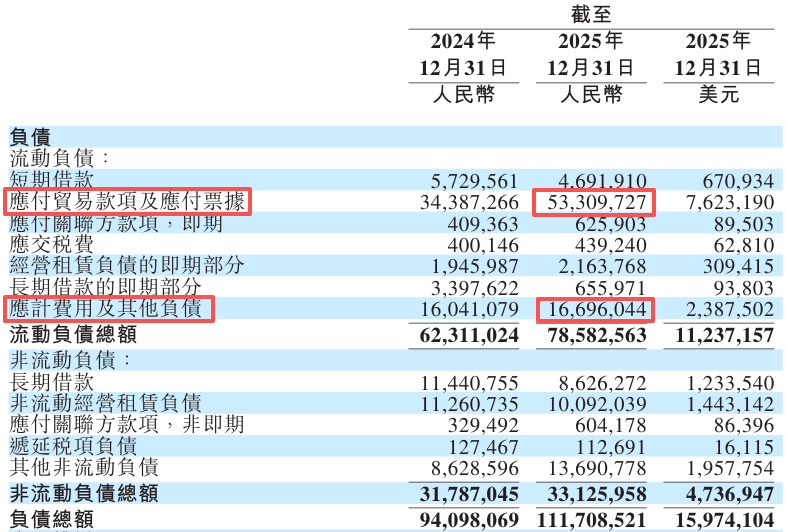 其次是未列明细的应计费用及其他负债,多达167亿。