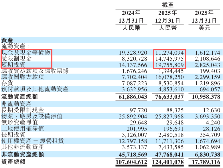 截至2025年末,现金储备458亿,其中现金112.74亿,较上一年减少80亿。