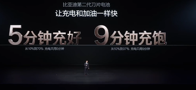 你看比亚迪前不久的发布会,充电已经几乎和加油一样快了,充电从10%到97%,只用9分钟。