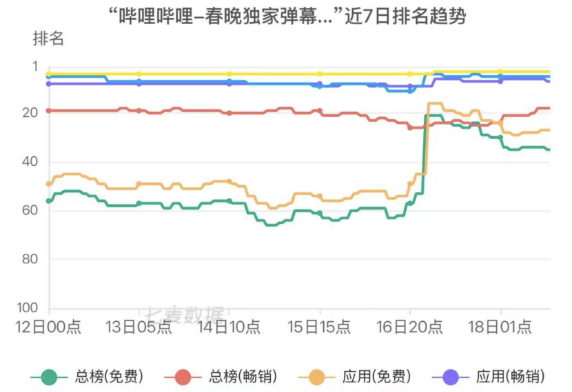 这是B站连续第二年成为春晚的独家弹幕视频平台,除夕当天,B站APP在App Store的排名极速提升,一度超过了热门AI软件,实现了日活同比增长了16%。