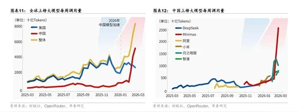 全球和中国上榜大模型每周调用量 资料来源:财联社,OpenRouter,华泰研究
