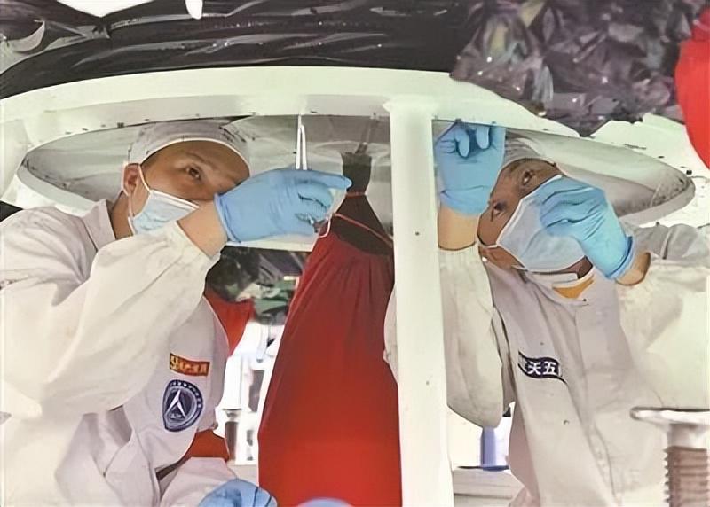 研制人员正在进行卫星总装工作,图片来源:中国航天科技集团五院