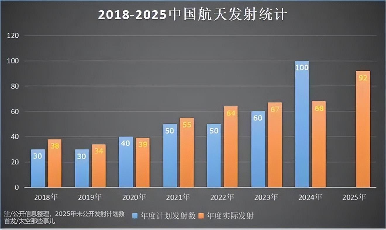 2018-2025年中国航天发射统计 数据来源:历年《中国航天科技活动蓝皮书》