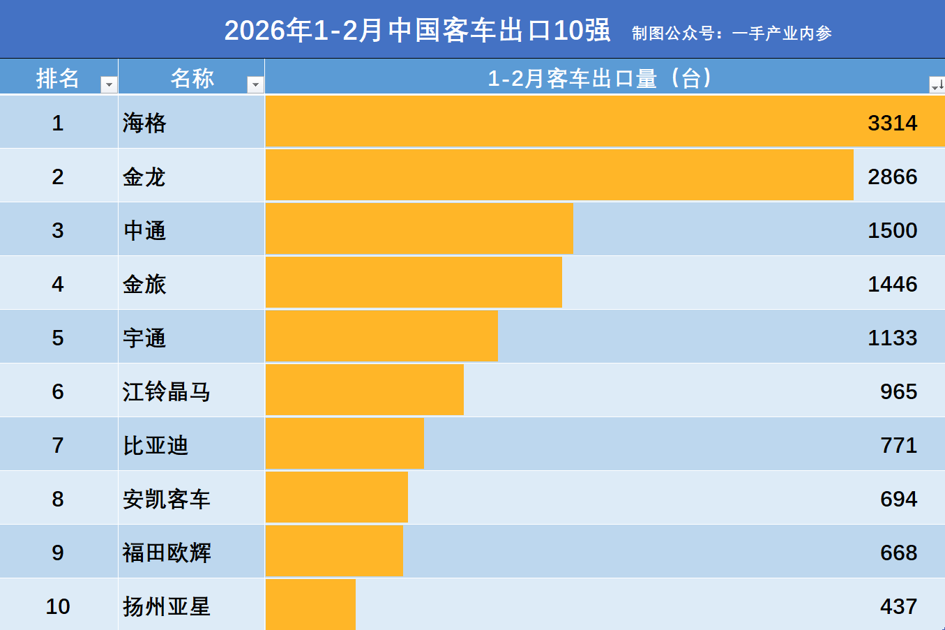 另附:2026年1-2月中国客车出口10强厂商名单,数据源于:中国客车信息网。