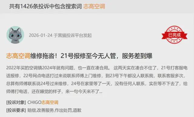 黑猫投诉平台上,关于志高的投诉累计超千起,不制冷、不制热、售后推诿是常态,甚至多次出现空调自燃引发火灾的严重事故。