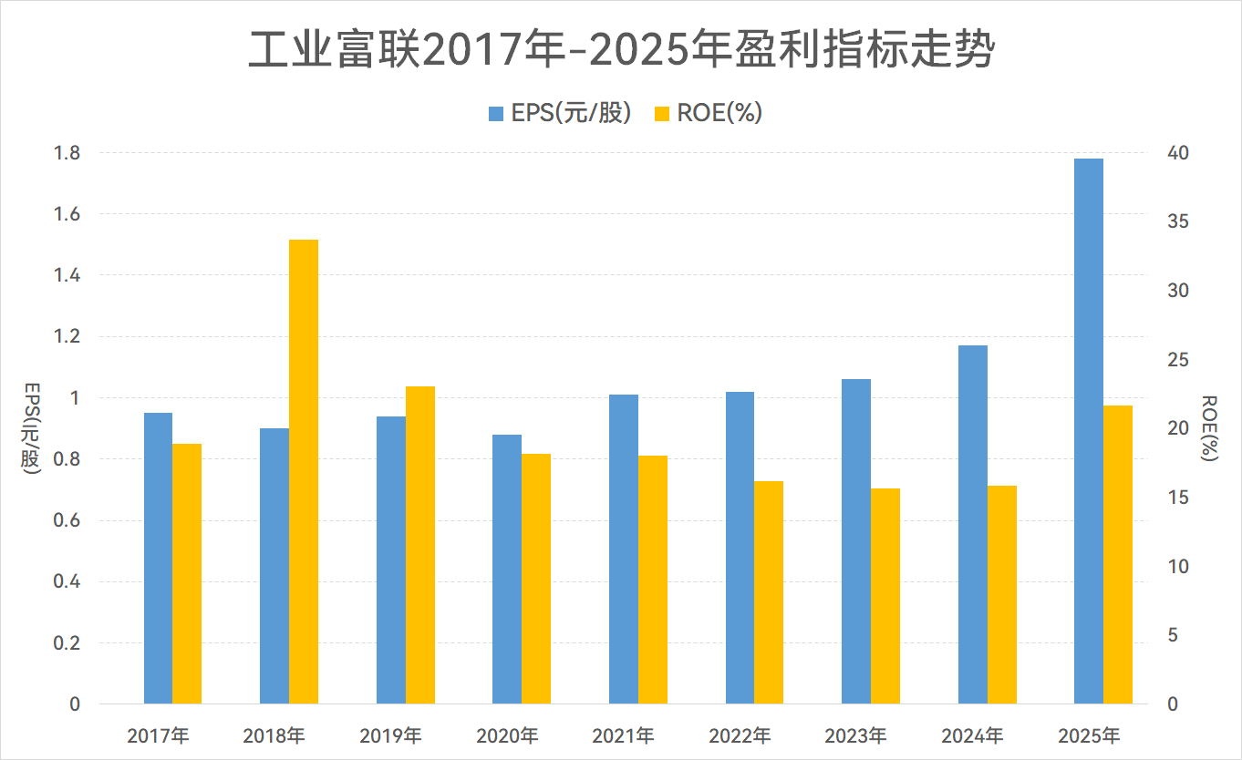 报告期内,工业富联基本每股收益1.78元,同比增长52.14%,刷新上市以来纪录;加权平均净资产收益率21.65%,同比增长5.8个百分点,创下2020年以来新高。