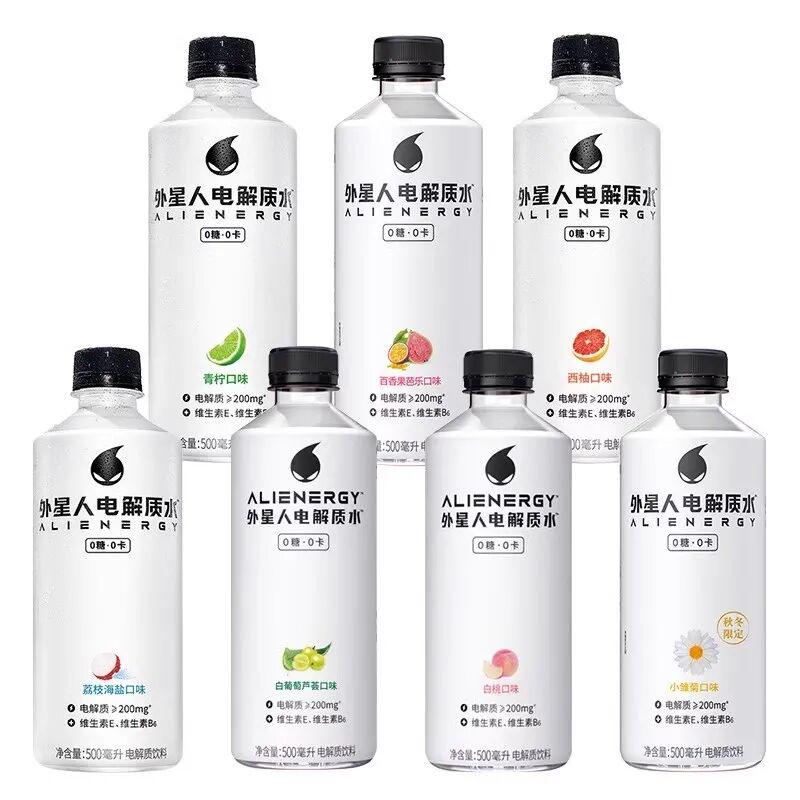 不过在2022年之前,电解质饮料始终贴着“口味偏怪”“仅限运动场景”的标签,只在小众圈层流行,并未迎来真正的市场爆发。随着国民健康意识显著提升,叠加健康消费升级与品类认知普及,电解质饮料迎来爆发式增长。这一阶段最具代表性的破圈产品,当属元气森林的外星人电解质水。作为赛道颠覆者,它主打0糖0卡,并推出青柠、荔枝海盐等更贴合大众口味的款式,截至2025年,已稳居市场份额前三。与此同时,东鹏饮料推出的“东鹏补水啦”凭借高性价比快速出圈。555ml大容量、定价3元的策略,让它被称作“性价比之王”。