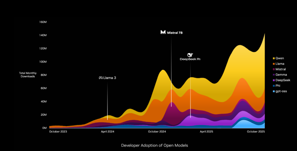 他指出,全球大量AI模型是开放的,企业、研究机构以及国家都依赖这些模型参与AI发展。当开源模型达到先进水平时,会带动整个产业链需求。