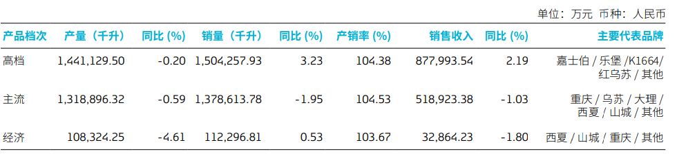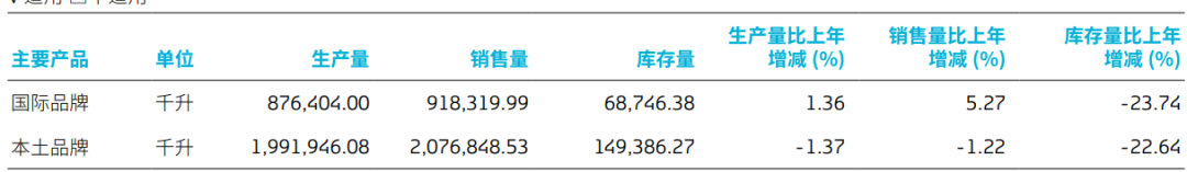 销量方面亦然,本土品牌同比下滑1.22%为207.68万千升;国际品牌同比上升5.27%为91.83万千升。