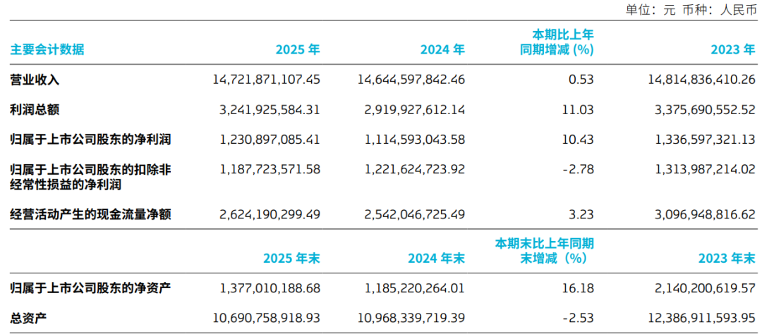 2026年3月11日,这家头顶“嘉士伯光环”的啤酒巨头披露2025年财务报告:营收147.22亿元,同比微增0.53%;归属净利润12.31亿元,增幅10.43%;扣非净利润11.88亿元,同比下降2.78%。这也是该司连续第二年扣非净利润下滑。