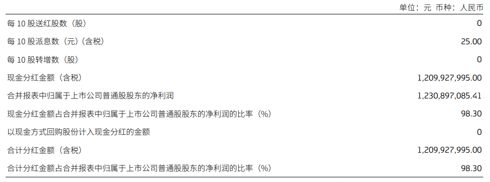 另外该司分红表现堪称行业顶级水平,全年合计向全体股东派发现金红利12.10亿元(含税),占归属于上市公司股东净利润的98.30%,近乎将全年净利润全额用于分红。