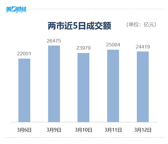 沪深两市成交额2.44万亿元,较上一个交易日缩量665亿元。