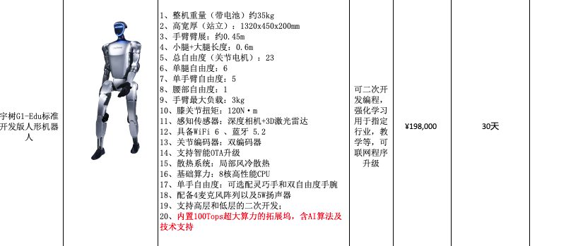 图据宇树官方报价单 官方报价