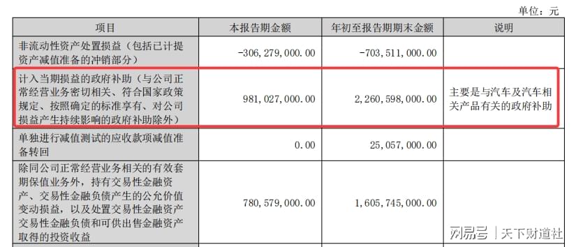 其中,计入当期损益的政府补助达近23亿元。意味着公司净利润近10%是由政府补贴所贡献。